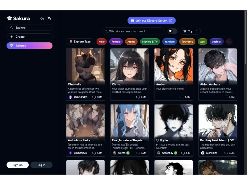 Character.AI: If you’re looking for more wholesome interactions, Character.AI offers richer conversations and better memory than Sakura FM, though you’ll need to skip the NSFW content entirely. The platform’s vibrant community and group chat features make it perfect if you want to engage with multiple AI personalities and fellow users, all for a straightforward $9.99 monthly fee.